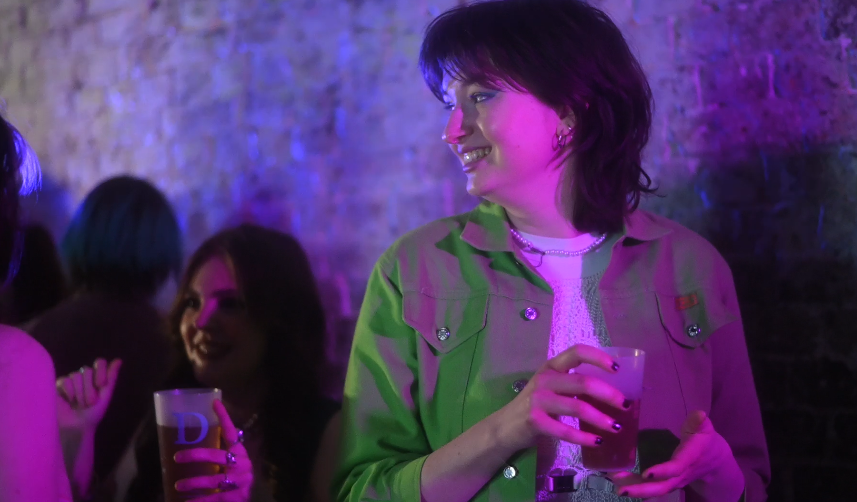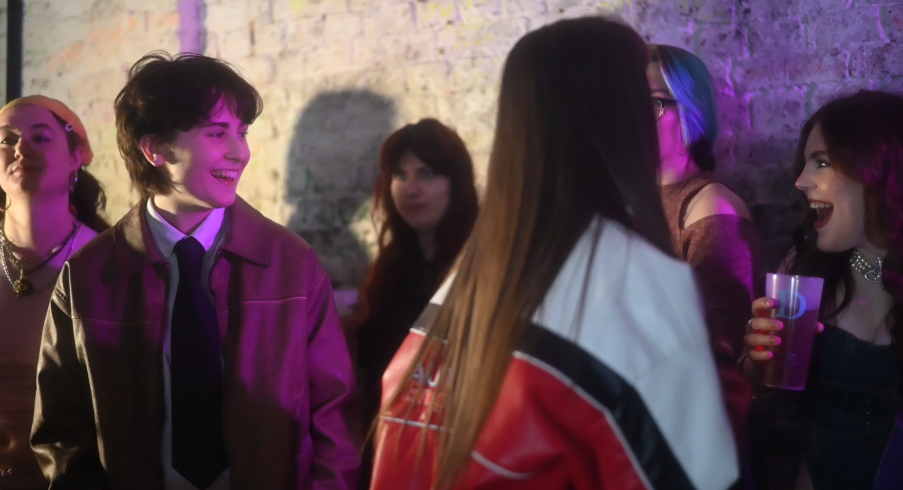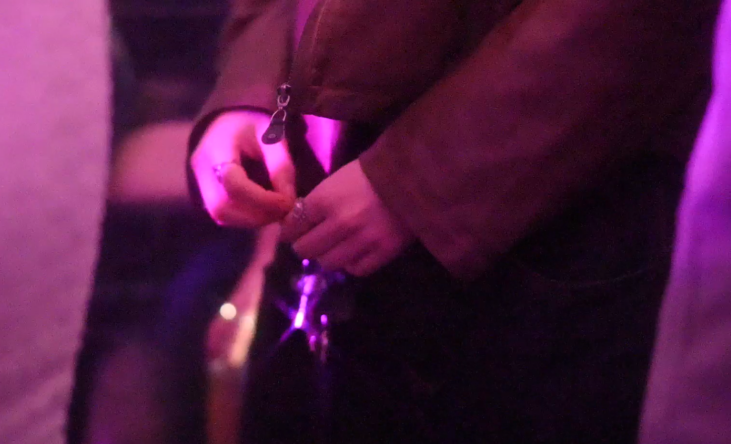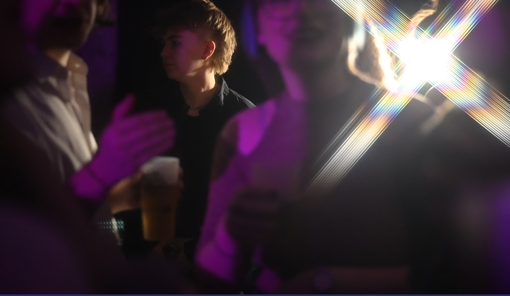Moving on to the club scene where the two characters meet each other, I wanted the lighting to reflect the two characters. We started the scene with pinks and purples and shifted to pink and orange. We used a wash light and two battery powered RGB lights, one of them with a strobe effect, to achieve the desired look. During the filming process, we focused on capturing the overall atmosphere, shots of the crowd, and interactions between the two characters.