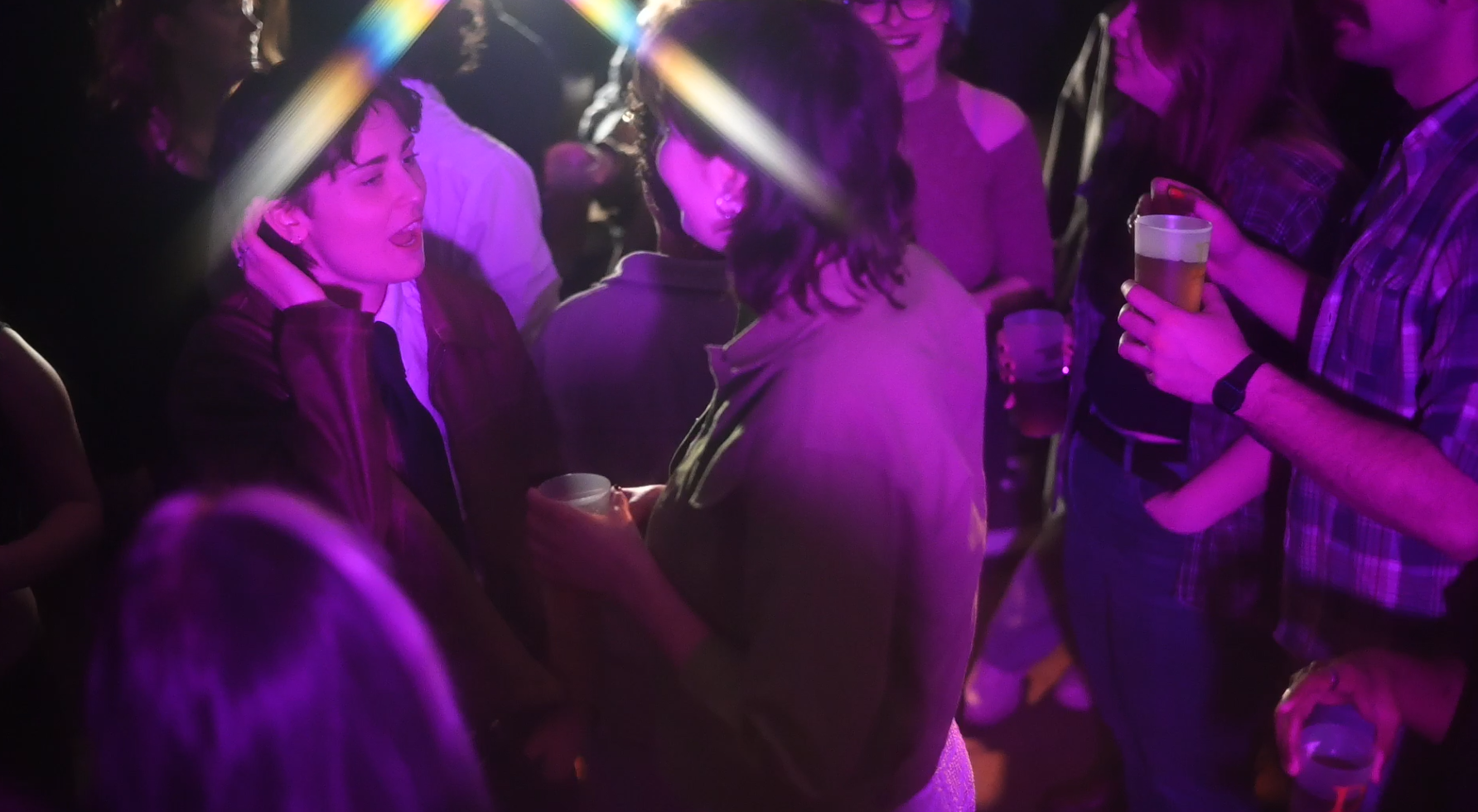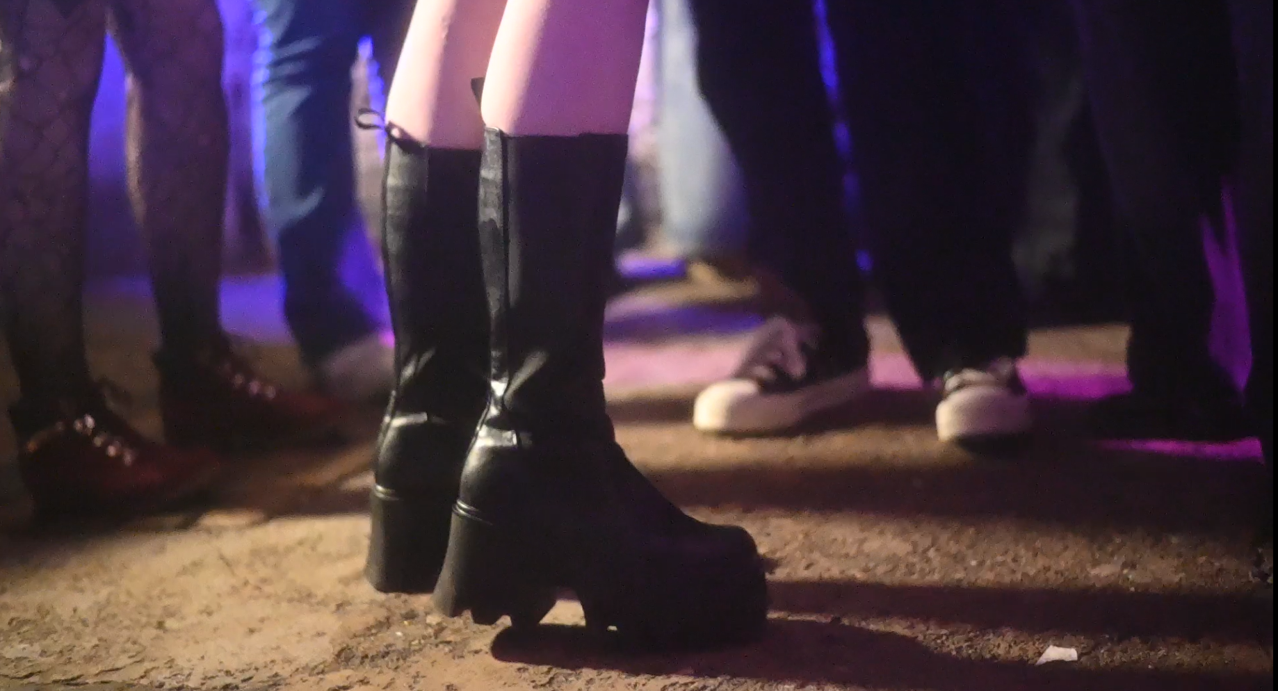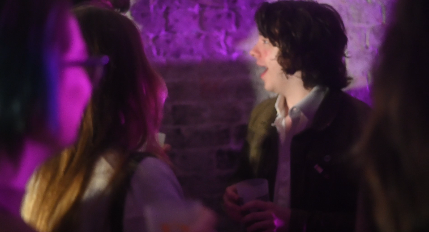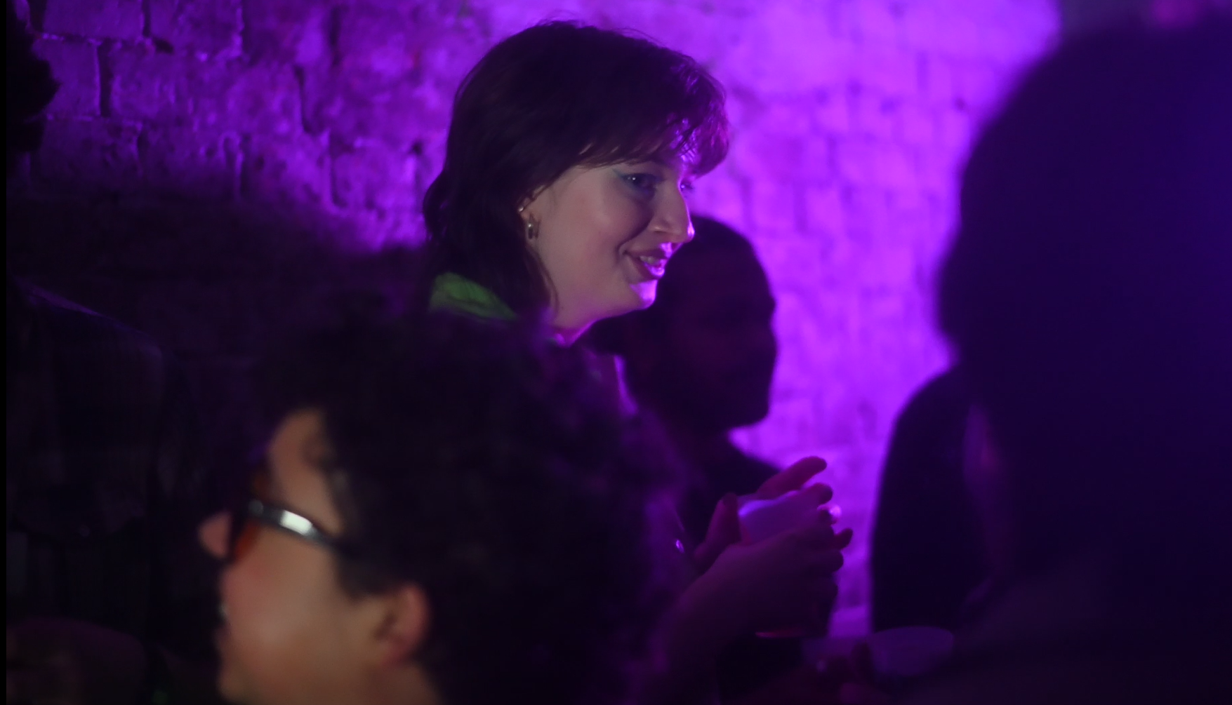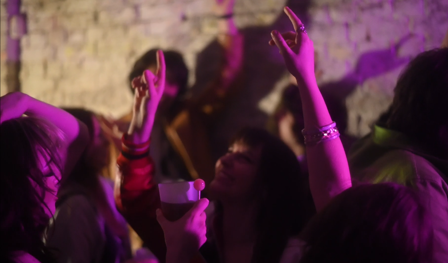 Moving on to the club scene where the two characters meet each other, I wanted the lighting to reflect the two characters. We started the scene with pinks and purples and shifted to pink and orange. We used a wash light and two battery powered RGB lights, one of them with a strobe effect, to achieve the desired look. During the filming process, we focused on capturing the overall atmosphere, shots of the crowd, and interactions between the two characters.