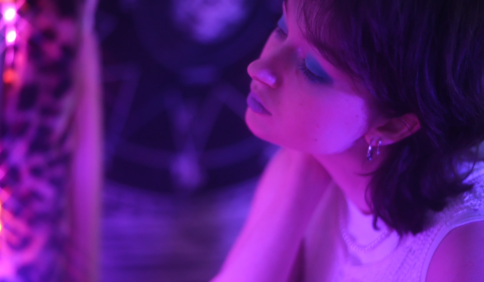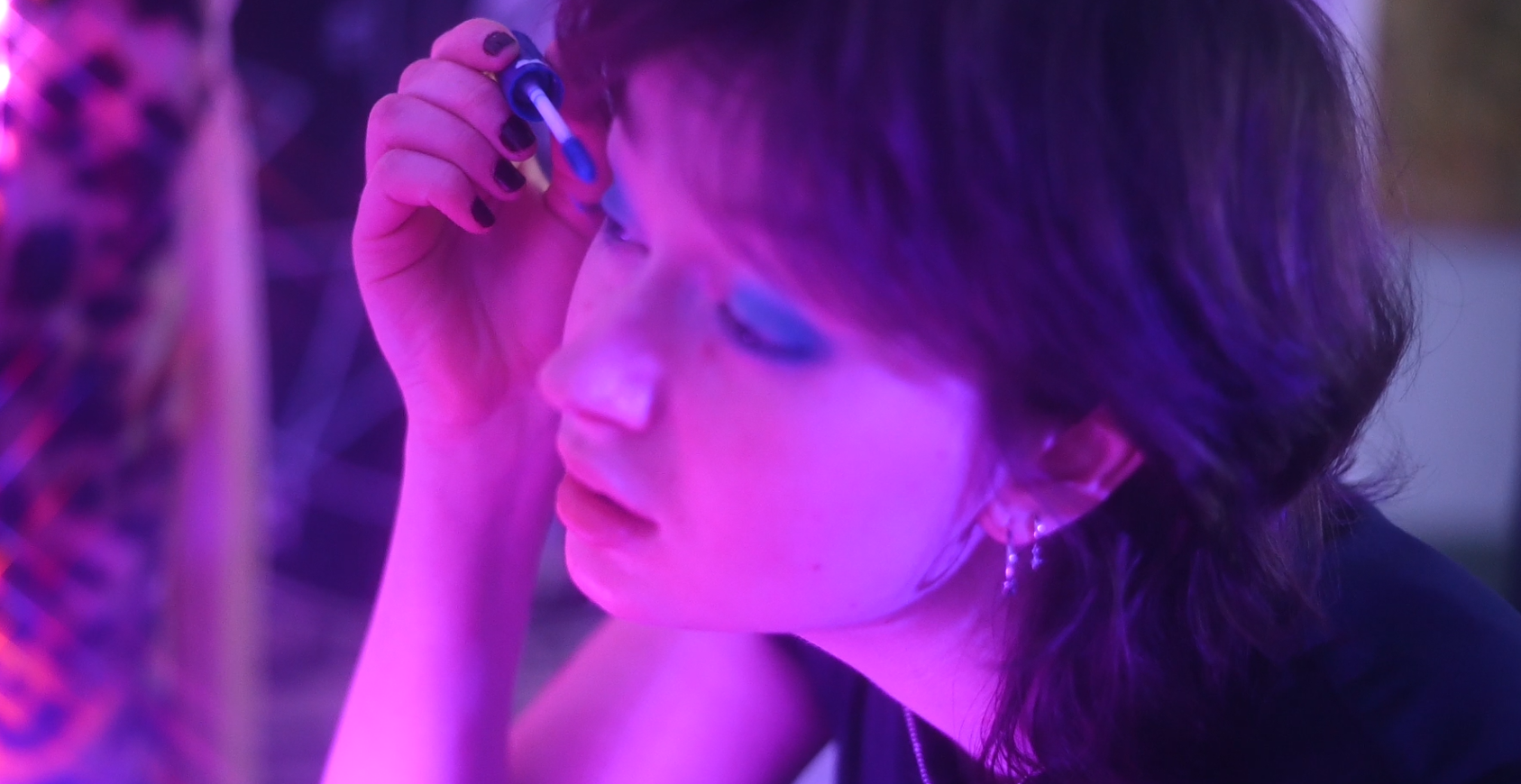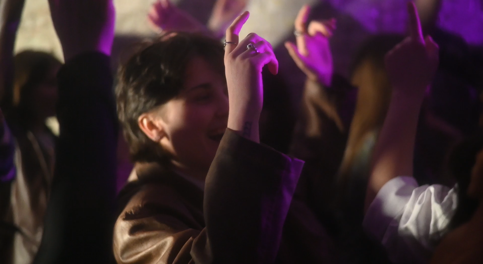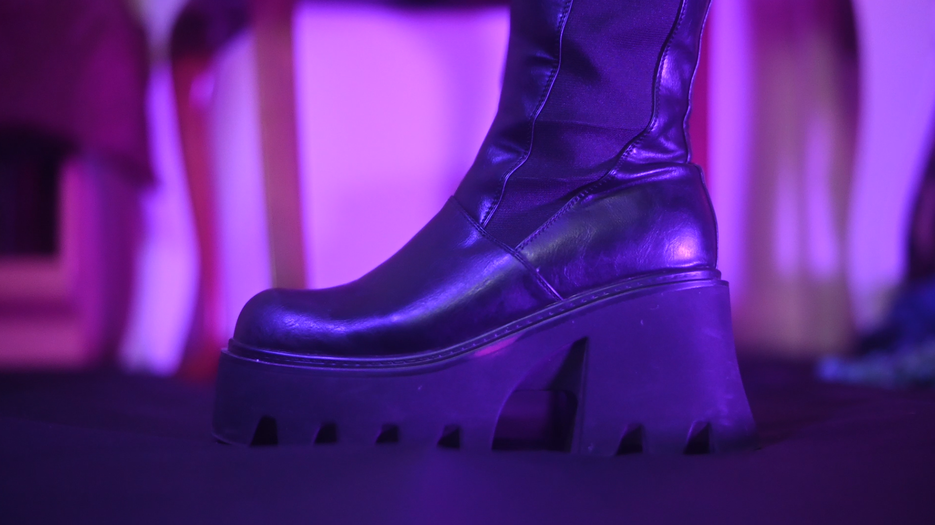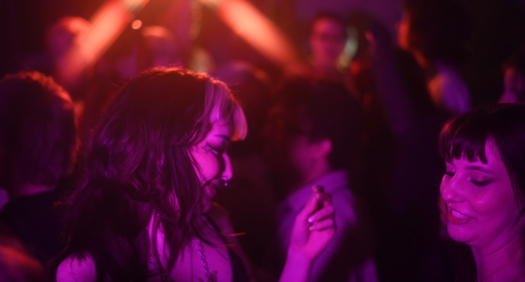 Moving on to the club scene where the two characters meet each other, I wanted the lighting to reflect the two characters. We started the scene with pinks and purples and shifted to pink and orange. We used a wash light and two battery powered RGB lights, one of them with a strobe effect, to achieve the desired look. During the filming process, we focused on capturing the overall atmosphere, shots of the crowd, and interactions between the two characters.