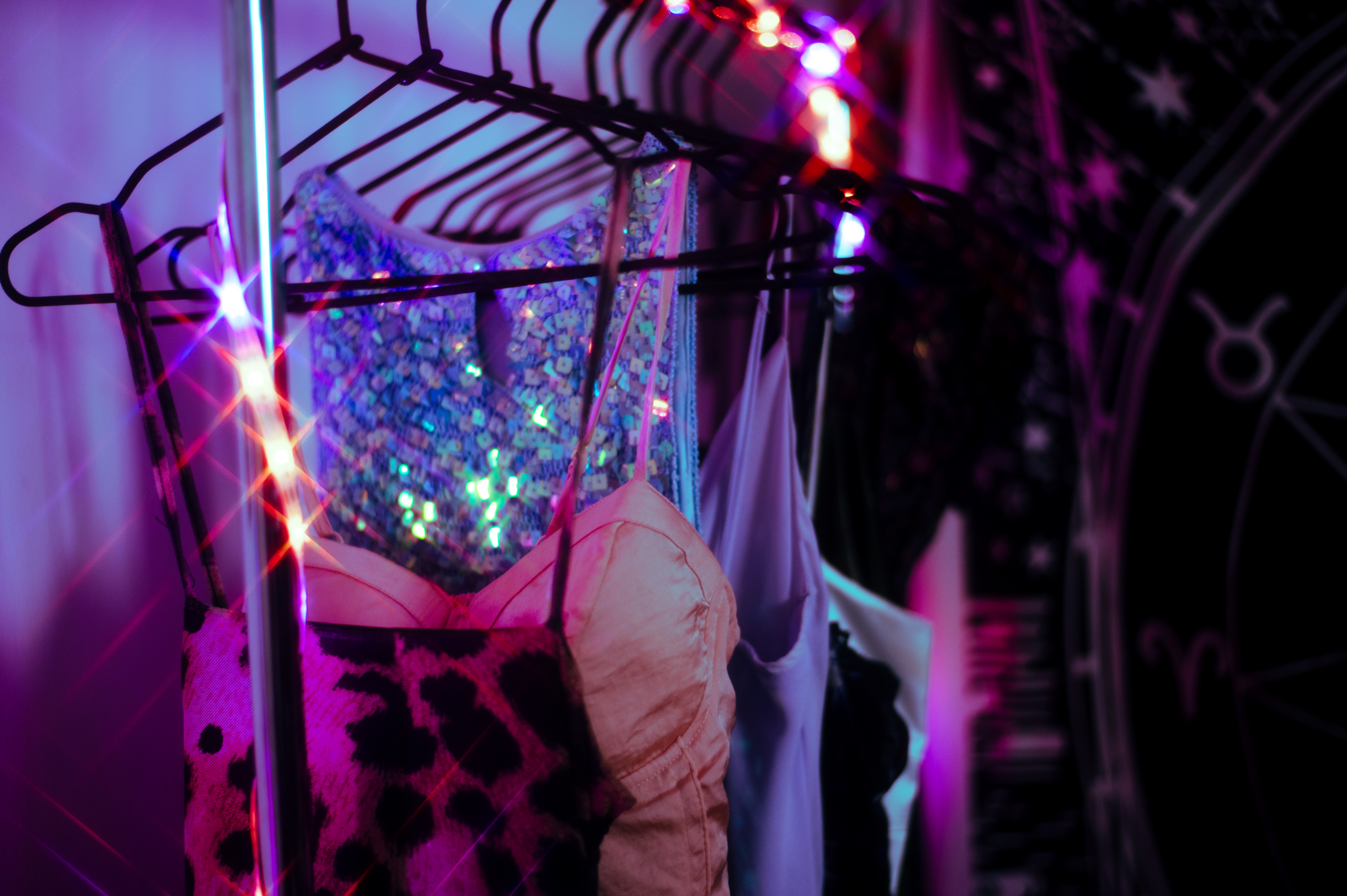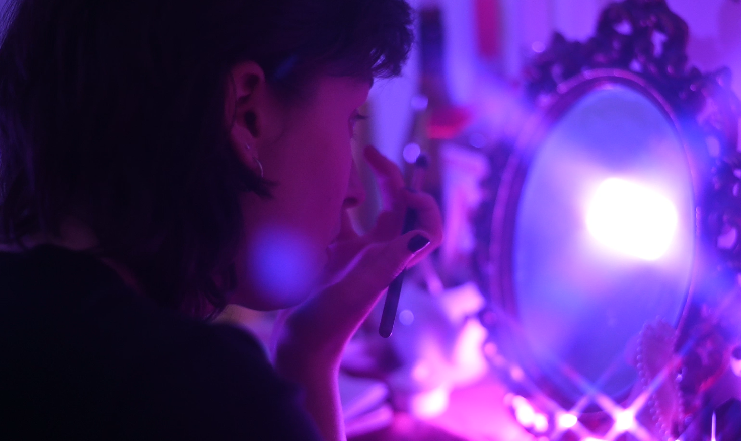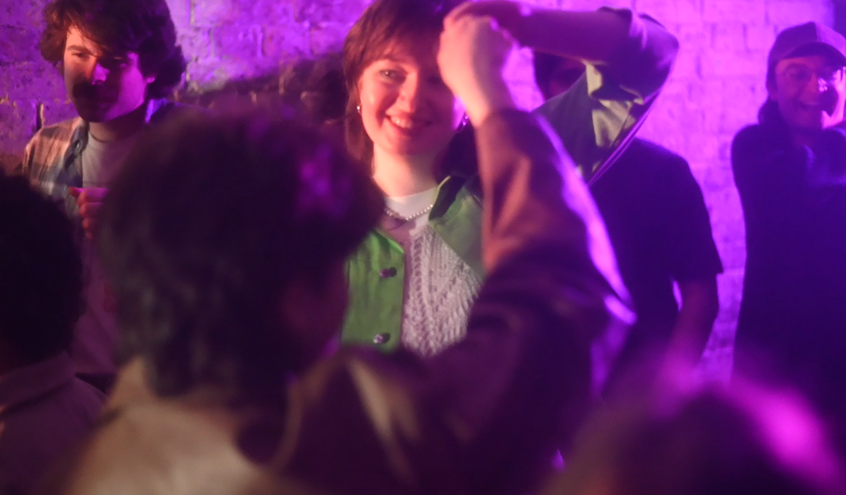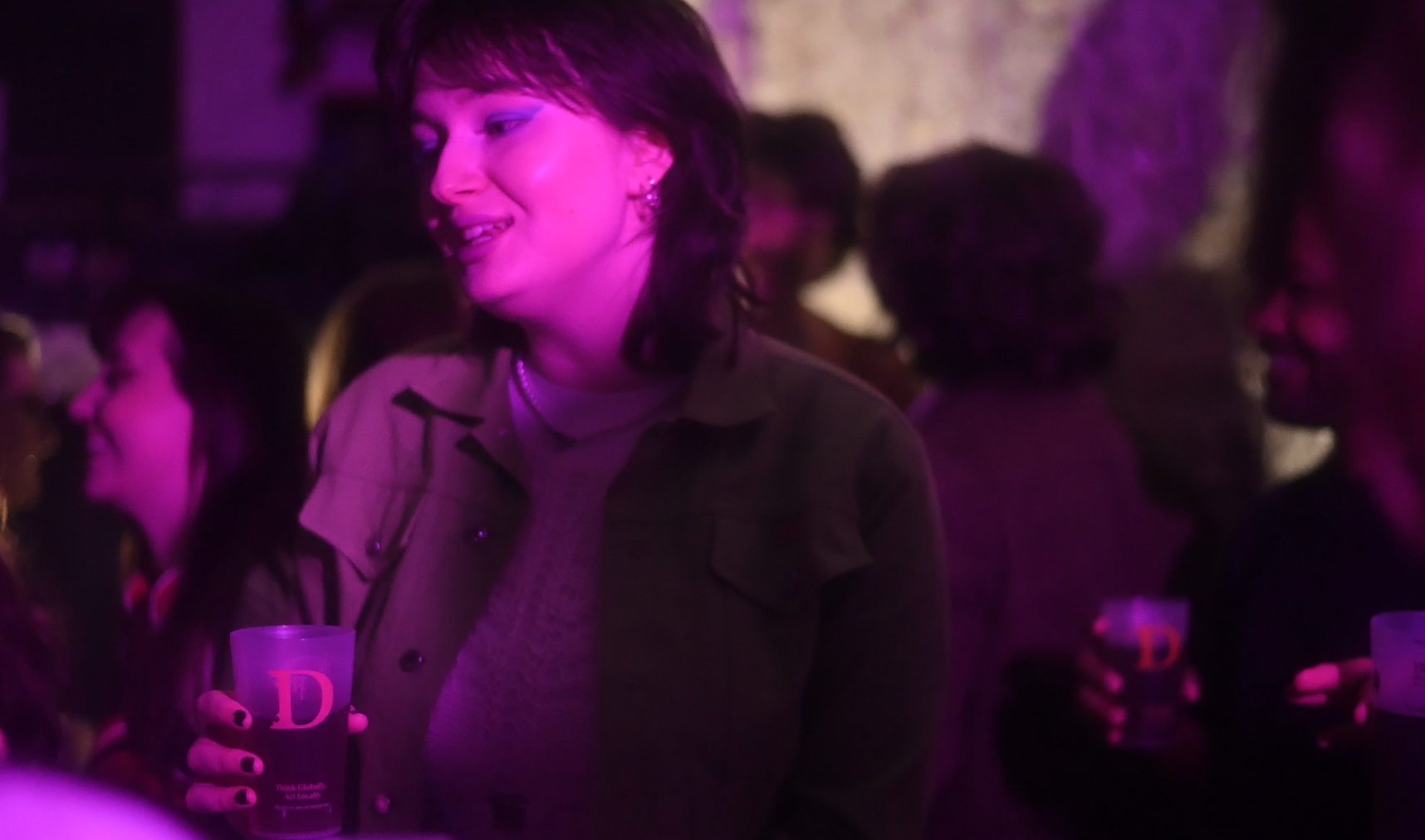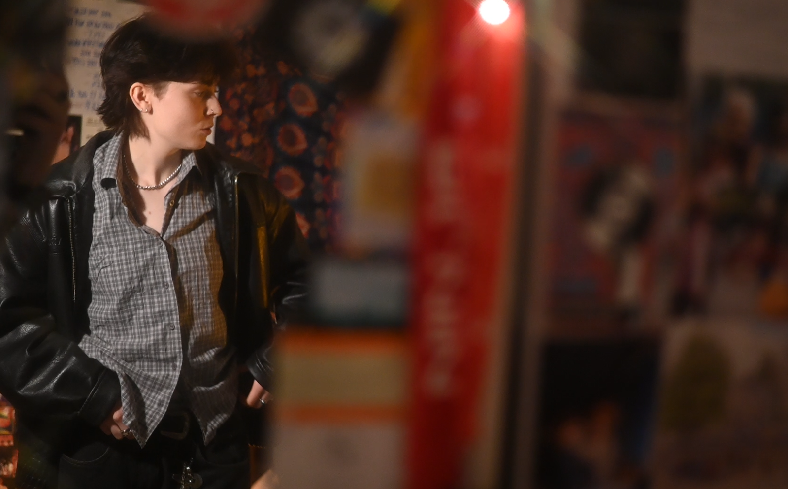 Moving on to the club scene where the two characters meet each other, I wanted the lighting to reflect the two characters. We started the scene with pinks and purples and shifted to pink and orange. We used a wash light and two battery powered RGB lights, one of them with a strobe effect, to achieve the desired look. During the filming process, we focused on capturing the overall atmosphere, shots of the crowd, and interactions between the two characters.